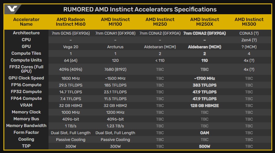 En cuanto a la memoria HBME, este modelo vendrá equipado, como dijimos, con 128 GB, una cantidad enorme que multiplica por cuatro el máximo de la AMD Instinct MI100, que suma 32 GB de HBM2. No tenemos detalles sobre el ancho de banda, y tampoco se conoce el diseño que tendría el sistema de refrigeración, pero es probable que AMD aproveche el salto a la nueva generación para introducir cambios importantes.