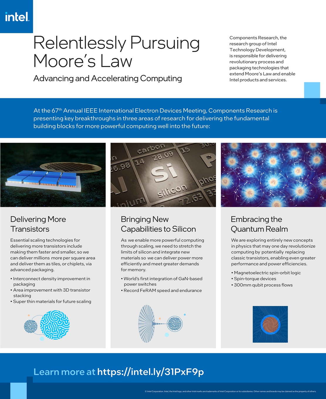 - Mejorar, e introducir, nuevas capacidades en el silicio. Esto tiene un objetivo, y es superar los límites del silicio con la integración de nuevos materiales que permitan mejorar la eficiencia, y cubrir demandas superiores de memoria. En este sentido, Intel ha logrado hitos importantes, como el récord con la FeRAM tanto en rendimiento como en resistencia.