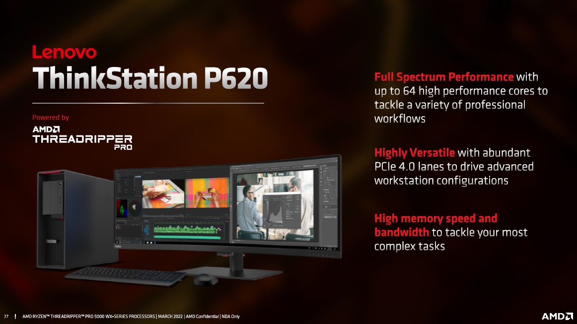 Lenovo será el primer gigante en utilizar los nuevos Ryzen Threadripper PRO 5000 WX en su estación de trabajo ThinkStation P620. Dicha estación de trabajo estará disponible a partir del 21 de marzo de este año, aunque no tengo detalles sobre el precio.