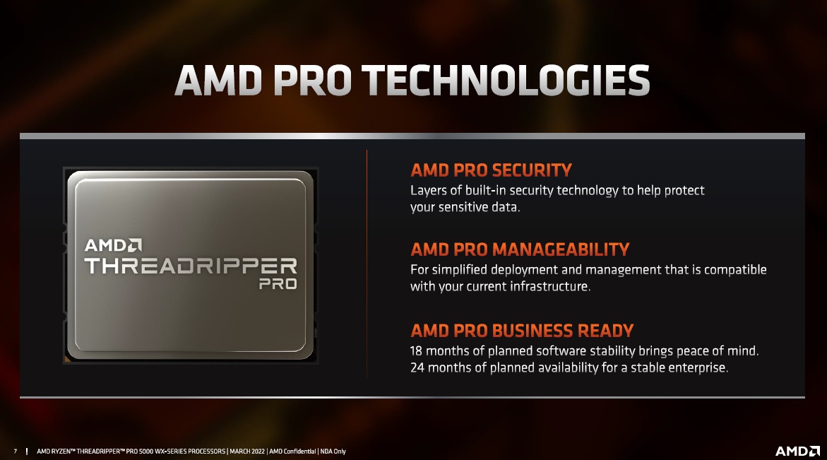 AMD mejorado mucho el rendimiento con los Ryzen Threadripper PRO 5000 WX, pero no se ha olvidado de otros aspectos importantes, como la plataforma en la que se integra esta nueva generación, que ofrece soporte de configuraciones de memoria de ocho canales y hasta 128 líneas PCIE Gen4, la seguridad y la gestión avanzada. En este sentido, debemos destacar tres claves que están presentes en estas nuevas CPUs: