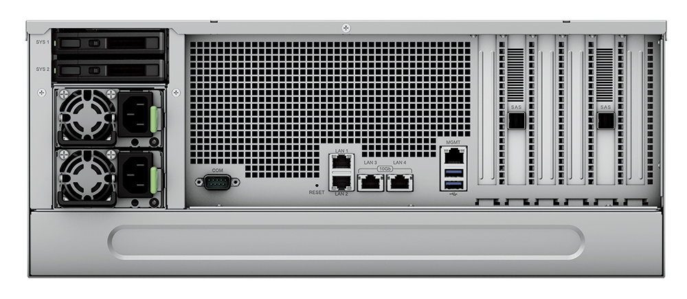 Es uno de los servidores de almacenamiento más avanzados de Synology por rendimiento y capacidad. Este SAS de alta densidad ofrece 60 bahías en una carcasa de montaje en bastidor 4U, que pueden ampliarse sobre la marcha con hasta 300 unidades gracias al soporte para cuatro unidades de expansión Synology RX6022sas. Dos unidades de estado sólido SATA adicionales actúan como unidades del sistema.