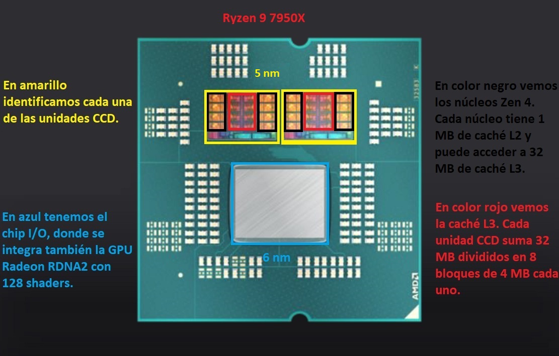 En este sentido, vemos que AMD ha tenido que reducir la caché L3 en 16 MB para liberar una enorme cantidad de espacio. Dicho espacio ha sido clave para poder doblar la cantidad de núcleos, algo que sin duda resulta impresionante y que pone en evidencia la enorme cantidad de espacio que ocupa la caché L3 dentro de una pastilla de silicio. Esta realidad también fue la que obligó a AMD a externalizar la caché L3 en sus GPUs Navi 31 y Navi 32.