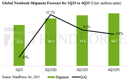 TrendForce ha publicado una predicción muy interesante que indica que el mercado de los ordenadores portátiles vivirá una importante recuperación, y que esta ya habría empezado durante el segundo trimestre del año. Todavía no tenemos los resultados oficiales, así que no podemos confirmarlo, pero dicha predicción apunta a un crecimiento del 15,7%.