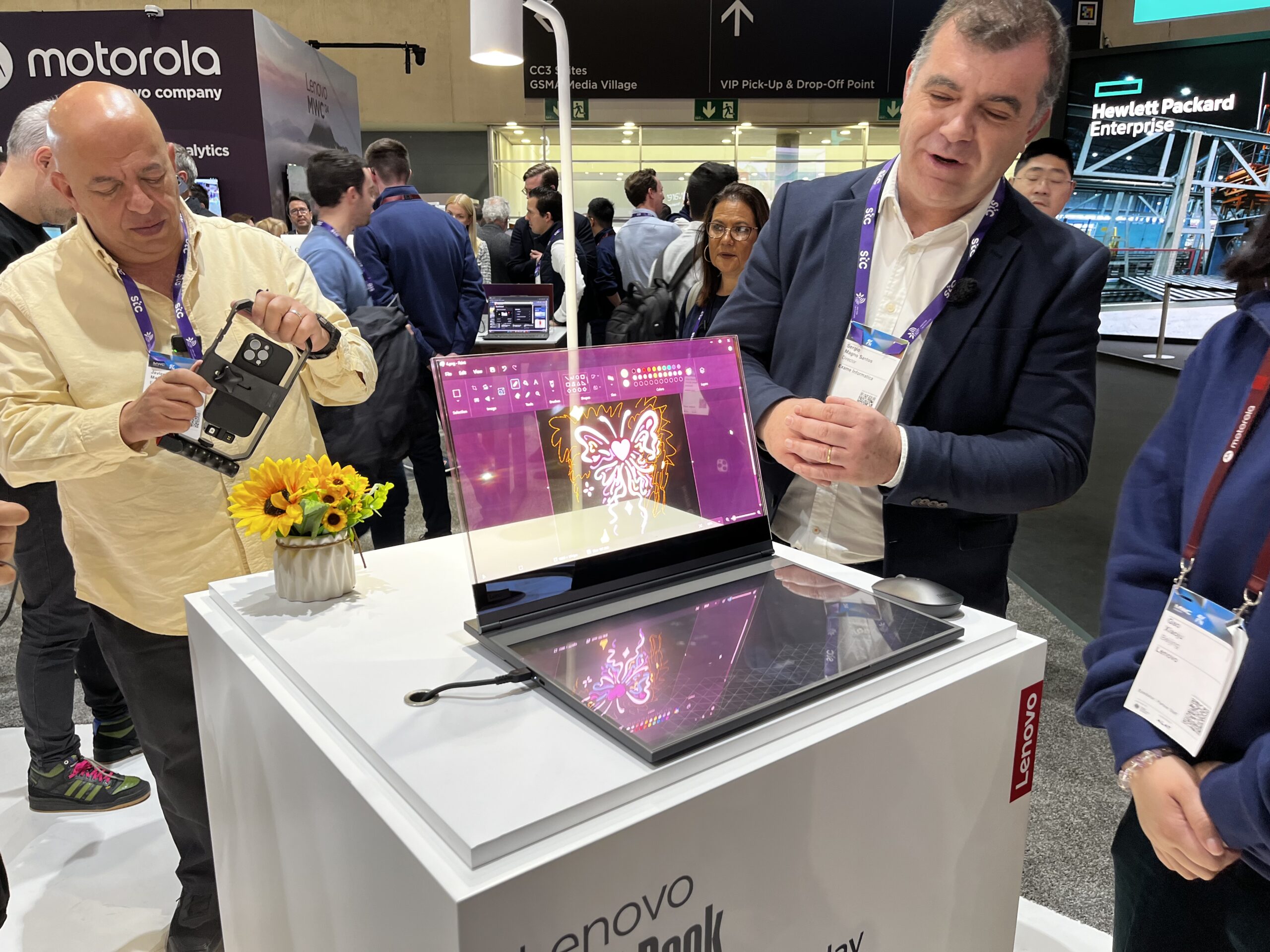 El del anillo no ha sido el único lanzamiento especial de la feria. En el pabellón de Lenovo por ejemplo, nos hemos literalmente asomado a su Project Crystal, un portátil con una pantalla completamente transparente y hemos podido jugar con el primer smartphone enrollable de Motorola: un Motorola Rollable Concept que probablemente nunca veamos más. En el de Xiaomi, su primer coche eléctrico se llevaba casi todo el protagonismo, pese a que solo hemos podido observarlo desde una distancia «razonable» que impedía ver su interior.