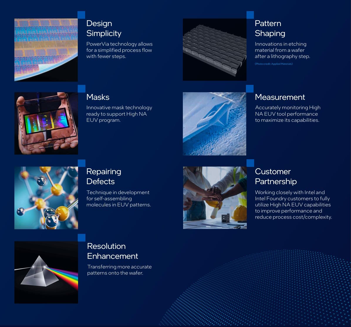 Como habréis podido imaginar para crear esos nuevos transistores de menor tamaño también es necesario recurrir a nuevas estructuras y a otras mejoras que, según la propia Intel, está desarrollando ahora mismo. Esto está directamente relacionado con lo que os he comentado anteriormente, que cuando bajamos de los 2 nm nos movemos ya en un terreno muy complicado donde los límites físicos del silicio se convierten en otra barrera a derribar.