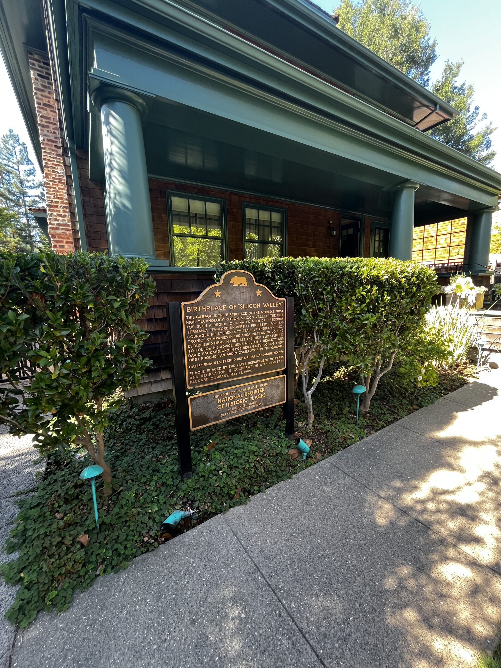 La casa, que tuvimos la oportunidad de visitar hace unos días en el marco del evento HP Imagine 2024, fue declarada en 1987 «lugar histórico» en Estados Unidos, listándose además en el Registro Nacional de Lugares de Interés. Una placa, en la entrada del jardín nos informa que este es el lugar en el que nació el concepto de Silicon Valley:
