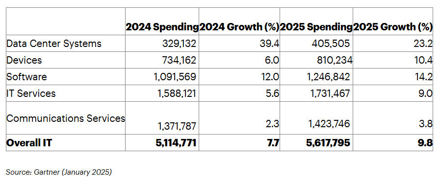 El gasto mundial en TI crecerá con fuerza en 2025