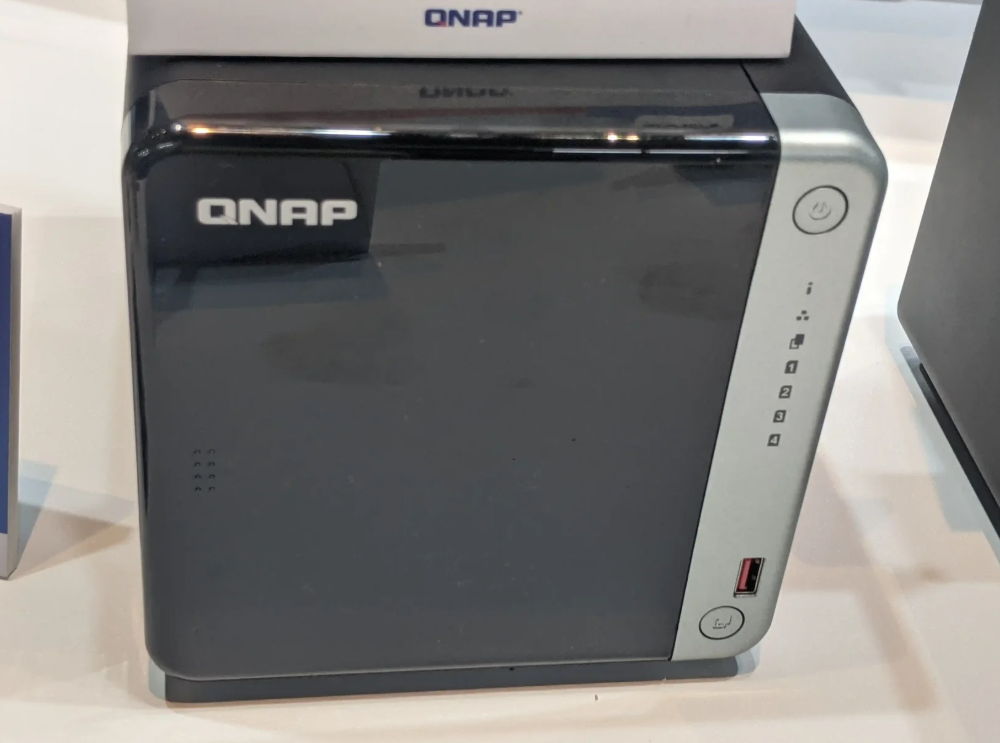 En cuanto al almacenamiento, QNAP ha ampliado su gama de NAS con modelos que abarcan desde torres compactas hasta sistemas de montaje en rack optimizados para IA. El TS-h974TX combina un procesador Intel Core i3-1215U con dos puertos Thunderbolt 4 para ofrecer almacenamiento de conexión directa y en red en un solo dispositivo, lo que lo hace especialmente atractivo para editores de vídeo que necesitan acceder a archivos multimedia de gran tamaño con una latencia ultrabaja.