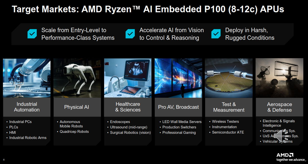 La automatización de fábricas, la IA física en la robótica móvil y otras aplicaciones edge impulsadas por IA están evolucionando rápidamente e impulsando la necesidad de plataformas informáticas que ofrezcan procesamiento de IA en tiempo real, rendimiento determinista y fiabilidad a largo plazo en entornos siempre activos, explica AMD en la presentación de sus nuevos chips.