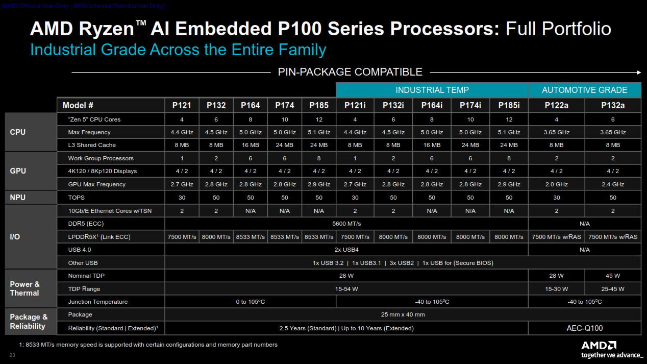 AMD quiere ir más allá de otra familia de procesadores integrados con soporte de larga duración y una marca robusta. La serie P100 ahora se presenta como una plataforma integrada escalable, que abarca desde diseños más pequeños hasta los más potentes con 12 núcleos de procesamiento Zen 5, manteniendo el mismo concepto general del integrado, la configuración de potencia configurable y un fuerte énfasis en la compatibilidad de pines y encapsulados en toda la familia Ryzen.