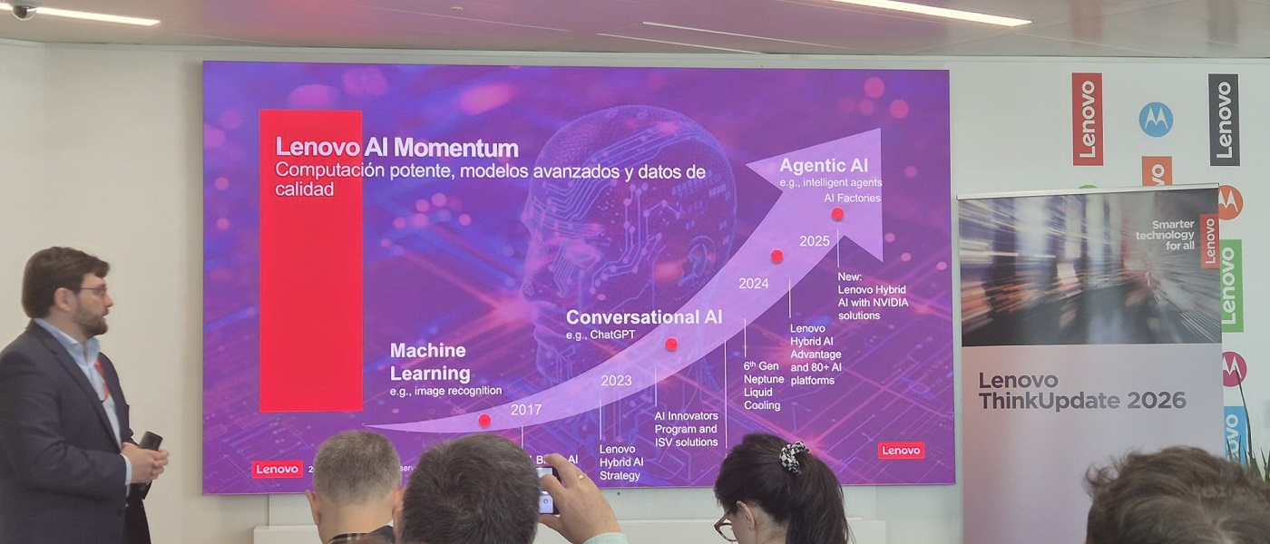 Las oficinas de Lenovo en Madrid acogieron ayer el Think Update 2026, el evento anual con el que la compañía pone al día a la prensa especializada sobre su portfolio profesional. Una jornada intensa en la que los dispositivos (portátiles, sobremesas, workstations y accesorios) compartieron protagonismo con una visión clara de hacia dónde se dirige la empresa en materia de inteligencia artificial. El mensaje fue nítido: la IA agéntica ya no es ciencia ficción, y Lenovo quiere ser el socio tecnológico que acompañe a las empresas en esa transición.