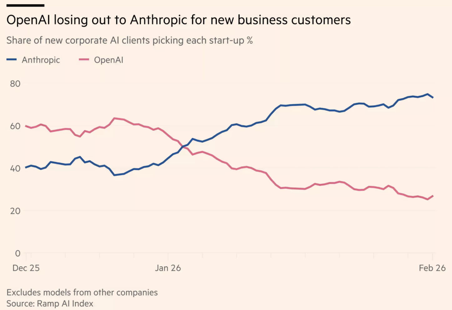 La expansión de la compañía se produce en un momento en que se enfrenta a gran presión por parte de Anthropic, que ha ganado terreno rápidamente entre los clientes empresariales desde principios de 2024. Los datos de más de 50.000 clientes de la startup de pagos Ramp indican que los compradores empresariales que contratan servicios por primera vez ahora eligen los servicios de Anthropic tres veces más a menudo que los de OpenAI, lo que supone un cambio radical con respecto al año anterior.