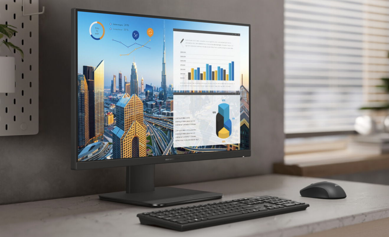 Y es que el nuevo AIO de ASUS presenta un diseño compacto todo en uno, integrando todos los componentes principales en la misma pantalla. Este enfoque reduce el desorden de cables y simplifica la instalación, lo que resulta especialmente beneficioso en oficinas donde el espacio y la organización son cruciales.