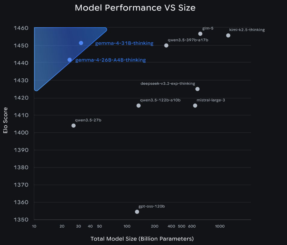 En cuanto a rendimiento, Google asegura que el modelo Gemma 4, con una densidad de 31 bytes, ocupa actualmente el tercer puesto entre los modelos abiertos de la clasificación de Arena AI, mientras que el modelo de 26 bytes se sitúa en el sexto lugar, superando notablemente a competidores de hasta 20 veces su tamaño. Los pesos sin cuantificar de los modelos de 26 y 31 bytes caben perfectamente en una única GPU NVIDIA H100 de 80 GB.